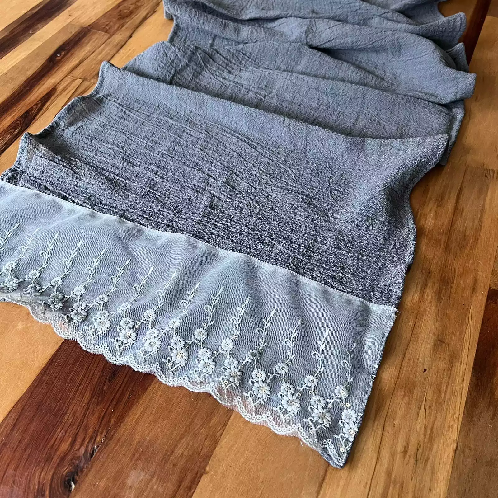 Sé el primero en valorar “Camino de gasa gris con puntilla transparente 1,38 x 0,46”