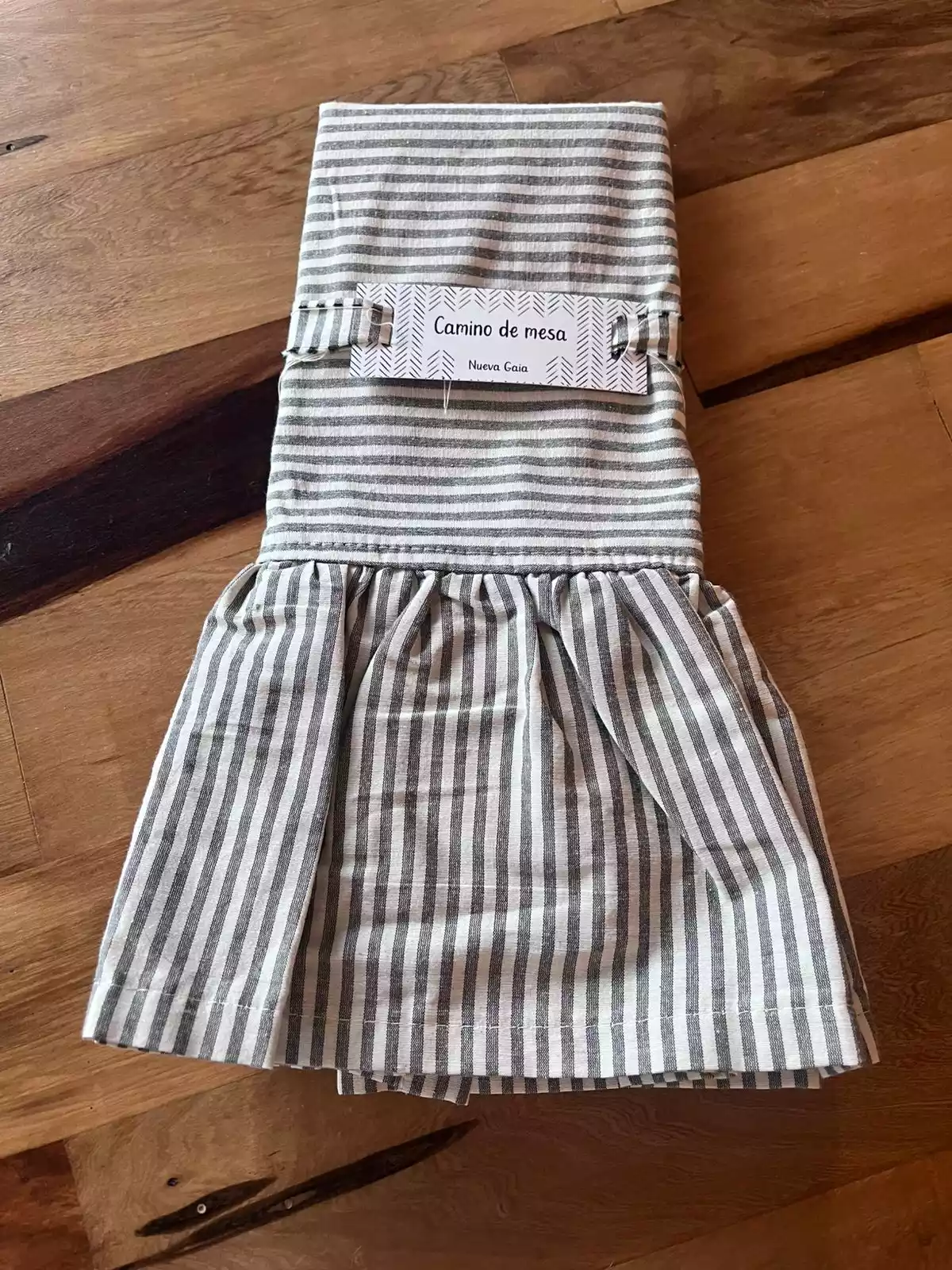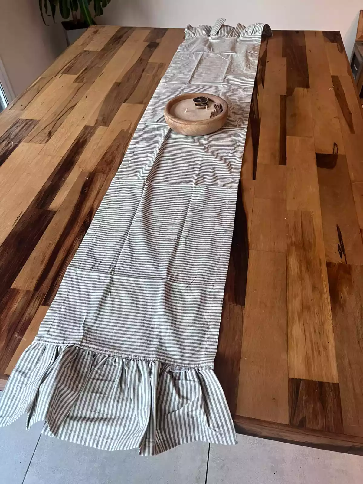 Camino de mesa símil Tusor con volado ideal para decorar tu hogar con estilo cálido y moderno. Producto funcional y decorativo, perfecto para cualquier ambiente. Envíos a todo el país desde El Galpón de Antonia.