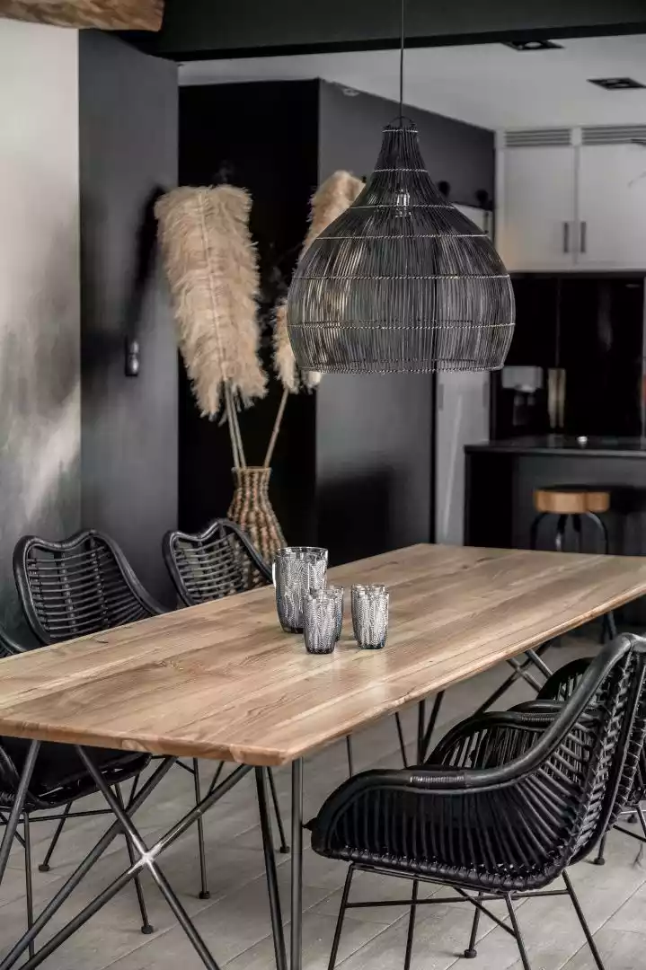 Colgante artesanal Hanoi de ratan negro y estructura metalica de 40 x 42 cmartefacto de iluminacion , Artesanal , Colgante , Colgante Artesanal , deco , deco home , deco interior , decoracion , Decoracion Con Luces , decoración de interiores ideal para decorar tu hogar con estilo cálido y moderno. Producto funcional y decorativo, perfecto para cualquier ambiente. Envíos a todo el país desde El Galpón de Antonia.