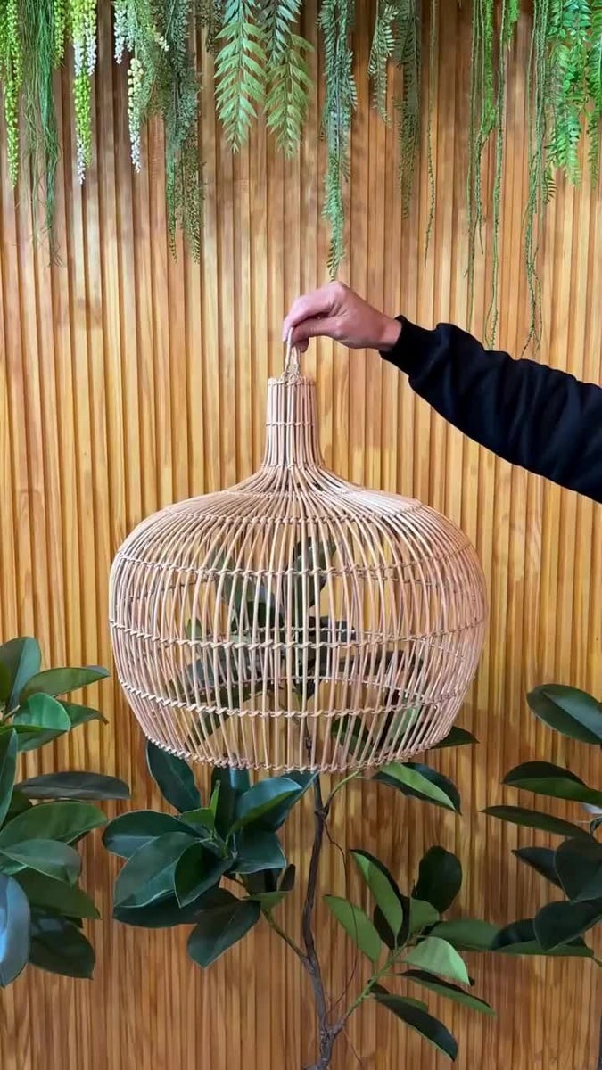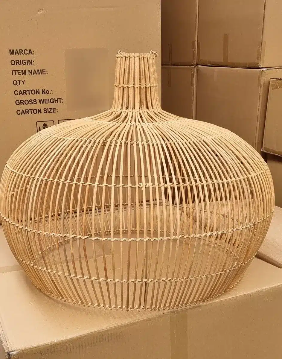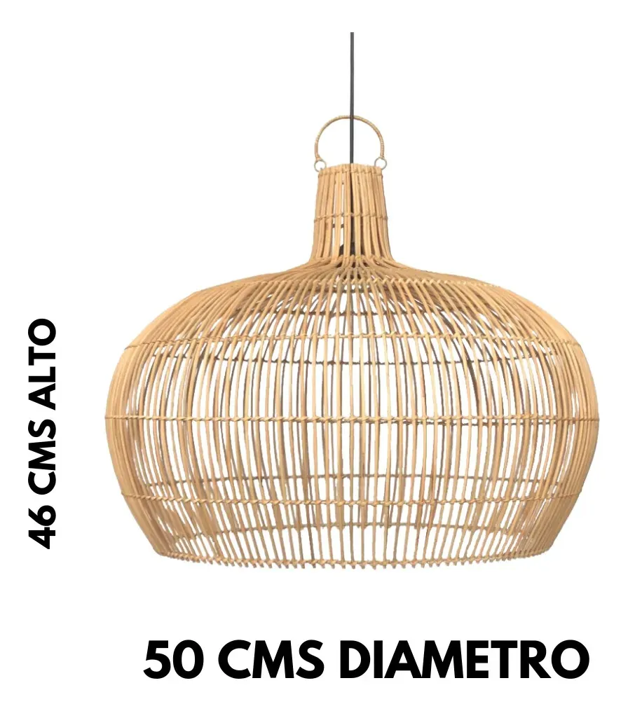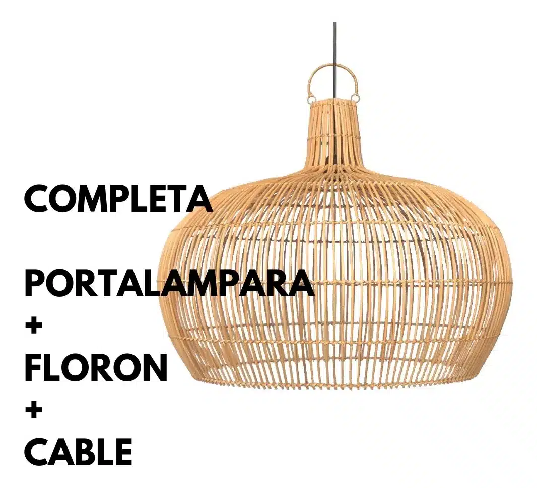 IMPORTANTE/INCLUYE: ** KIT ELECTRICO COMPLETO ** CABLE BLANCO O NEGRO DE 1,50 MT MAS FLORON PARA TECHO MAS PORTALAMPARAS. ** NO INCLUYEN LAMPARA/BOMBILLA MATERIAL BAMBU NATURAL CON ESTRUCTURA DE METAL MEDIDAS 50X46 CMS PRODUCTO DE FIBRAS NATURALES IMPORTADO DE VIETNAN