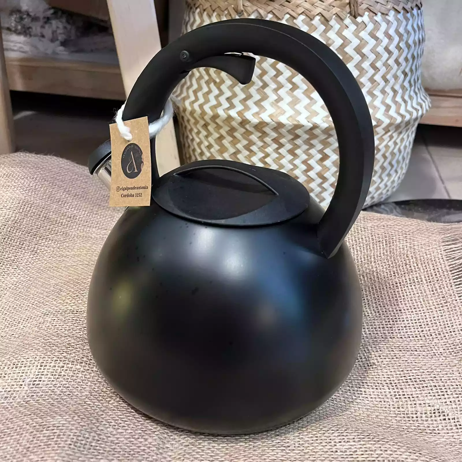 Pava silbadora negro mate ideal para decorar tu hogar con estilo cálido y moderno. Producto funcional y decorativo, perfecto para cualquier ambiente. Envíos a todo el país desde El Galpón de Antonia.