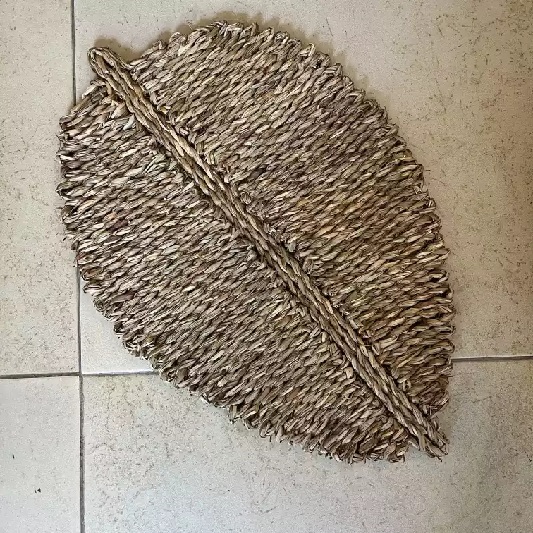 Plato de sitio redondo Seagrass formato hoja ideal para decorar tu hogar con estilo cálido y moderno. Producto funcional y decorativo, perfecto para cualquier ambiente. Envíos a todo el país desde El Galpón de Antonia.