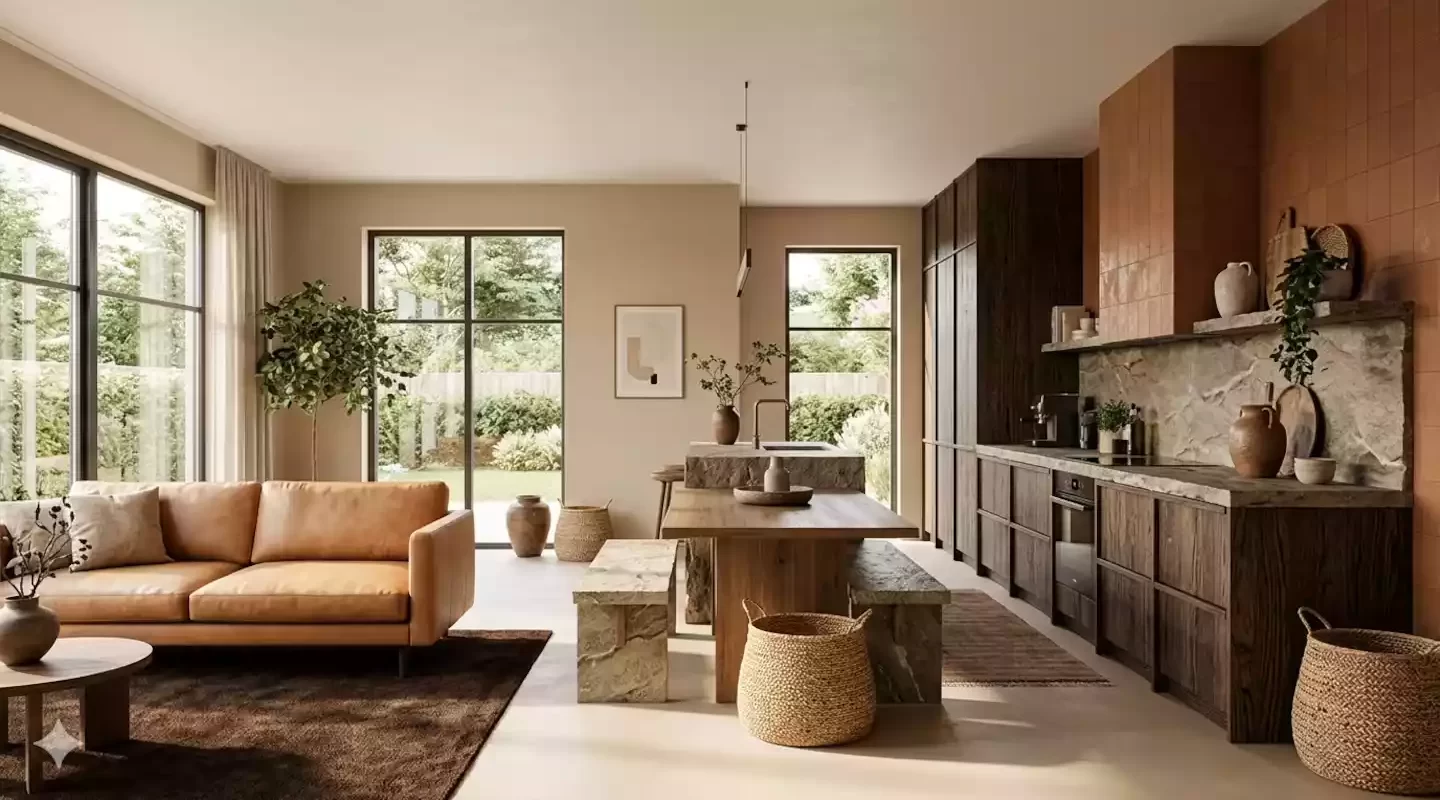 La paleta de esta temporada se inspira en la naturaleza: tonos terracota, marrones, beige, verdes apagados y neutros cálidos. Estos colores generan espacios relajantes y atemporales, reemplazando los blancos fríos por opciones más acogedoras.